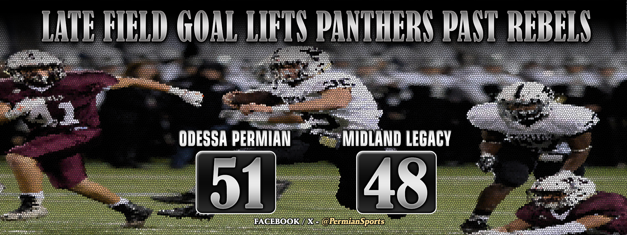 | Panthers Edge Out Lee Rebels October 24 – Iker Munoz knocked a 26-yard field goal through the uprights as time expired for a 51-48 Mojo victory over Midland Legacy in the rivalry game. Permian sits alone atop the District 2-6A standings. |